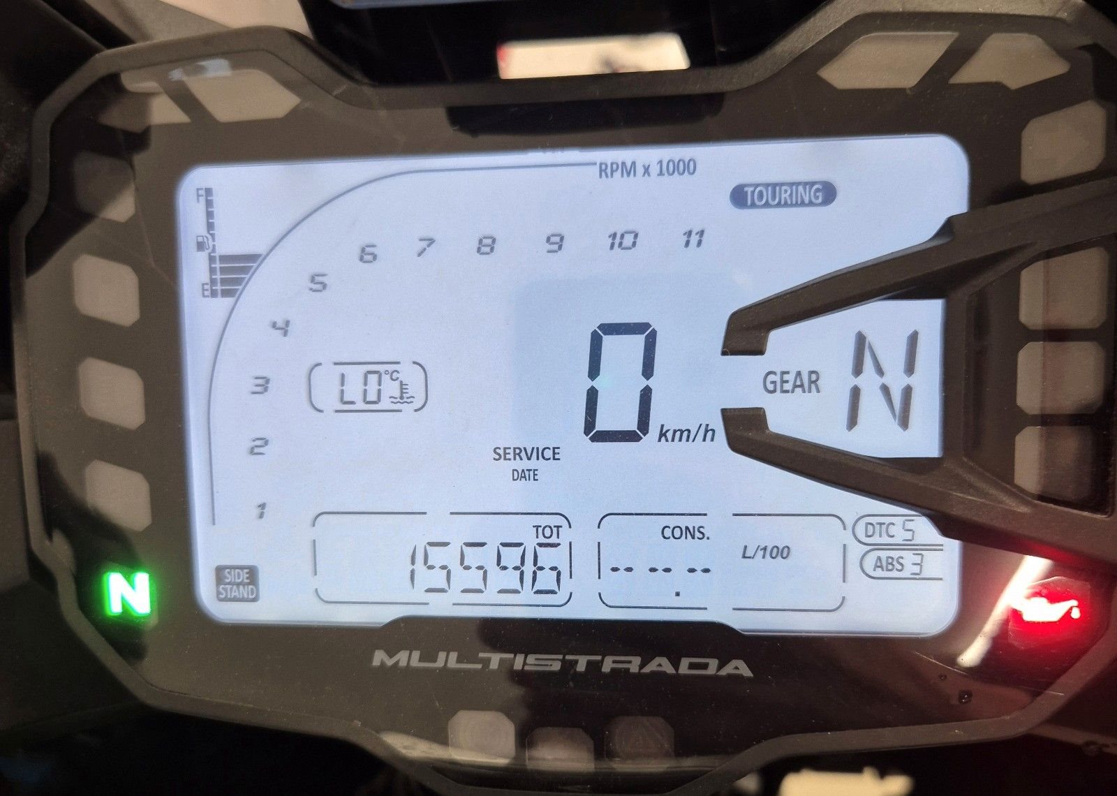 Serienausstattung Riding Modes, Power Modes, ABS, Ducati Traction Control (DTC) und Koffer.