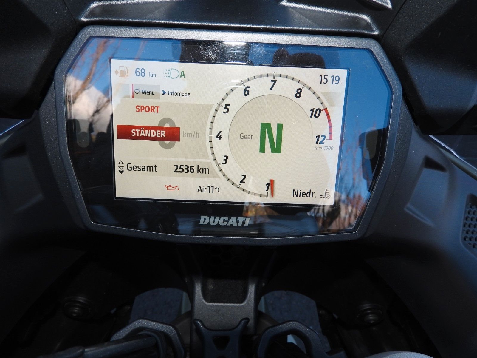 SerienausstattungDucati Quick Shift (DQS) Up / Down 2.0, Voll-LED-Scheinwerfer mit Daytime Running Light (DRL)?, automatische Blinkerrückstellung, Ducati Multimedia System (DMS), Coming-Home-Funktion, Tempomat, USB-Steckdose