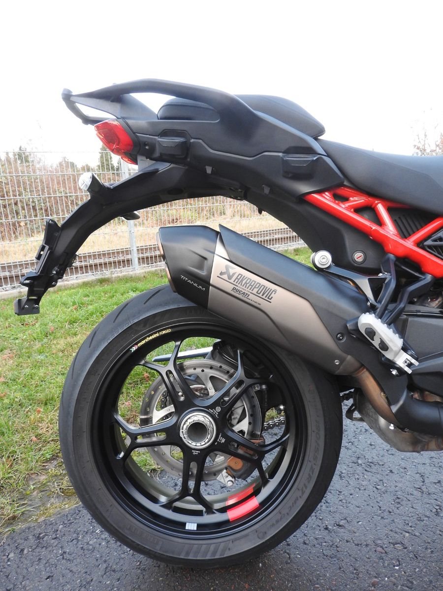 Serienausstattung: Elektronisch einstellbare Öhlins Smart EC 2.0 Federung, Ducati Quick Shift, Abstandstempomat, Hands-Free, beleuchtete Bedienelemente, 6,5-Zoll-TFT-Farbdisplay mit Ducati Connect und Karten-Navigation, Voll-LED-Scheinwerfer, Vorderer Kotflügel und Schnabel aus Carbon, Akrapovic Endschalldämpfer.