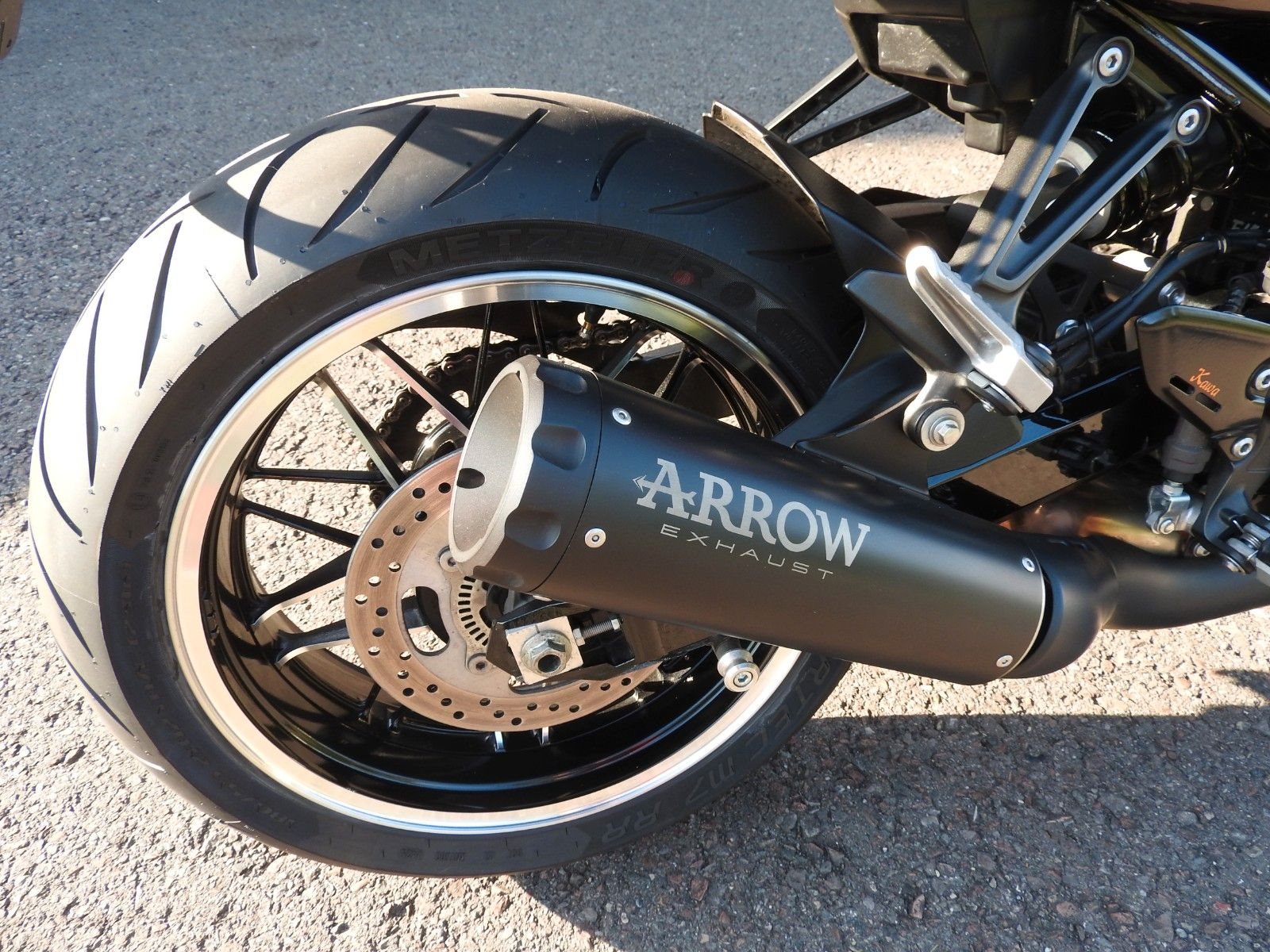 Als Zubehör runden ein Arrow-Endschalldämpfer, kleine Blinker, kurzer Kennzeichenhalter,