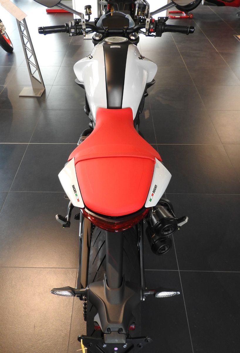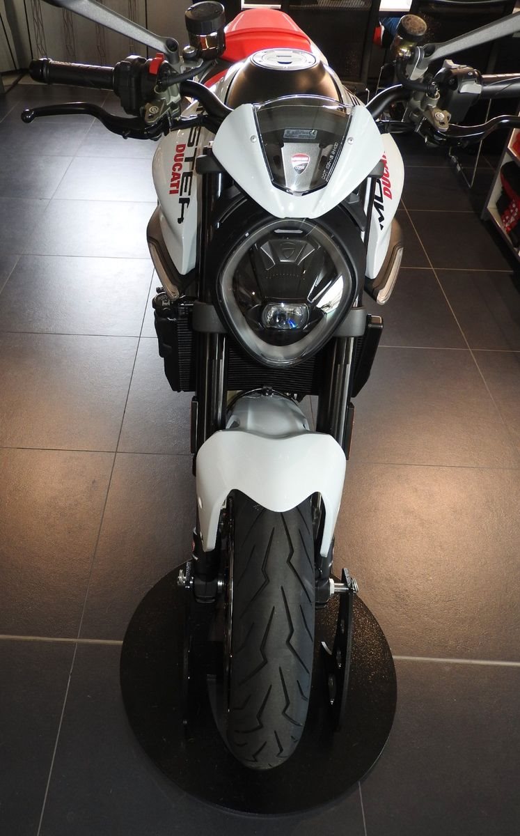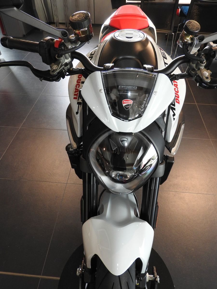 Zum Verkauf steht eine DUCATI Monster+ (Neufahrzeug, Iceberg White).