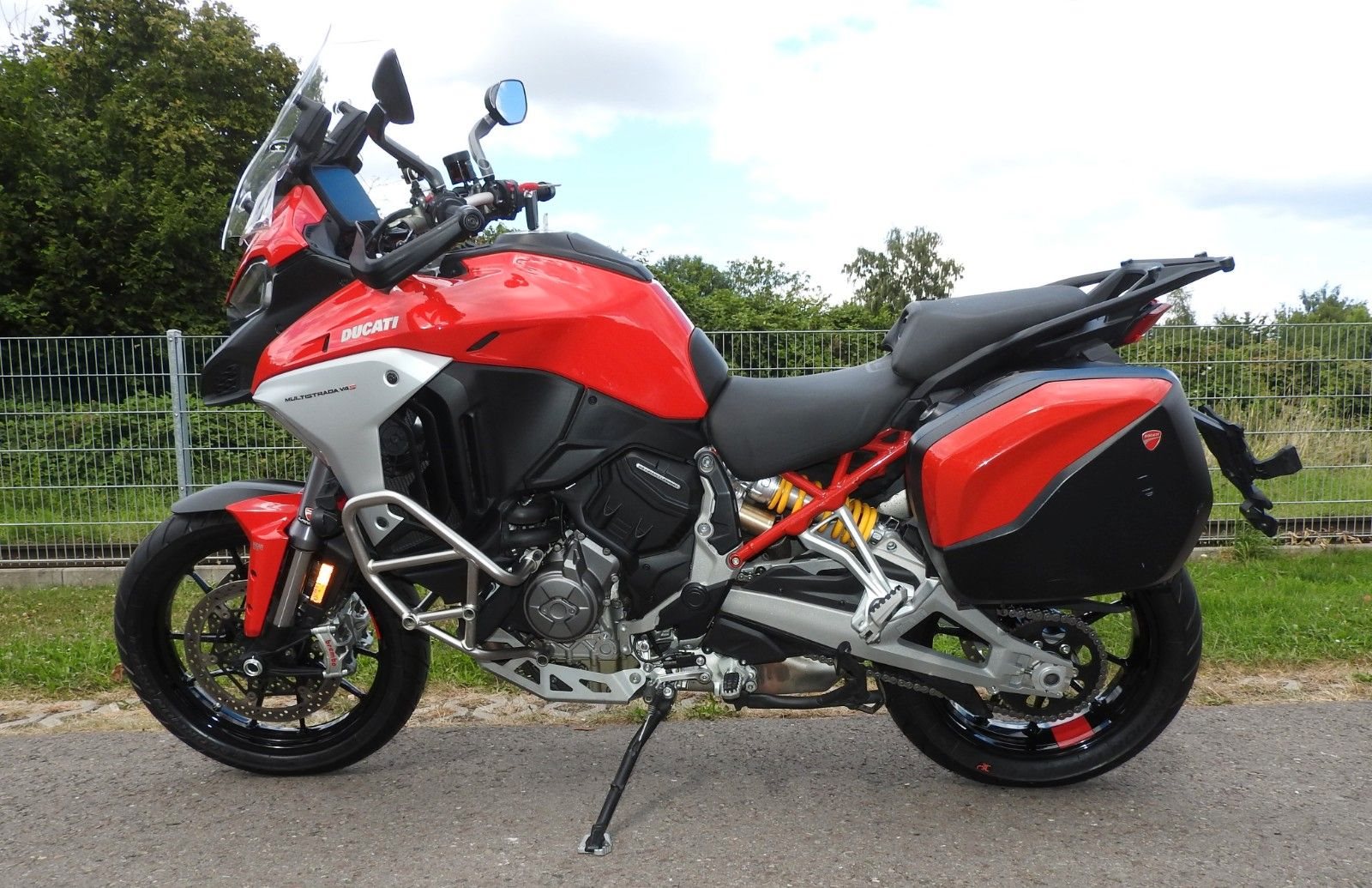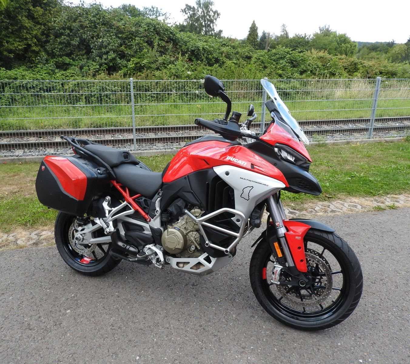 Zum Verkauf steht eine DUCATI 'Multistrada V4S Travel+Radar' mit 'Enduro-Paket' aus erster Hand mit einer Gesamtfahrleistung von 23856 Km (Scheckheft gepflegt). Die Reifen sind neu!