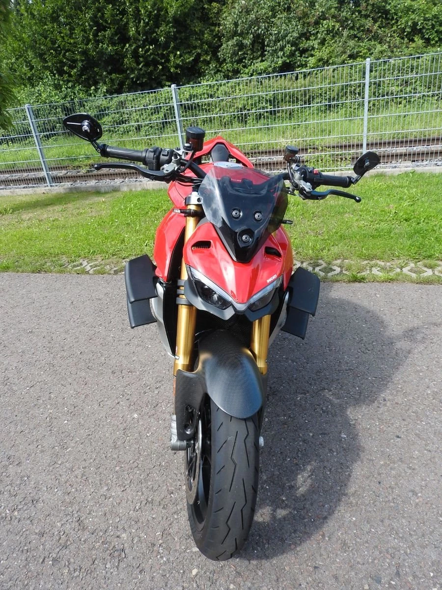 Die Maschine hat viel von ihren sportlichen Wurzeln aus der Panigale mitgenommen. Das wird Freunde vom Streetfighter begeistern. Elektronik und Motorleistung sind überlegen, das Chassis ist radikal schnell und die Maschine regiert bei den Stoppuhr Duellen. Sie hat jedoch Ecken und Kanten. Die große Überraschung: man sitzt gut auf der edlen Bestie und kann tatsächlich auch ausgedehnte Touren mit ihr fahren!
