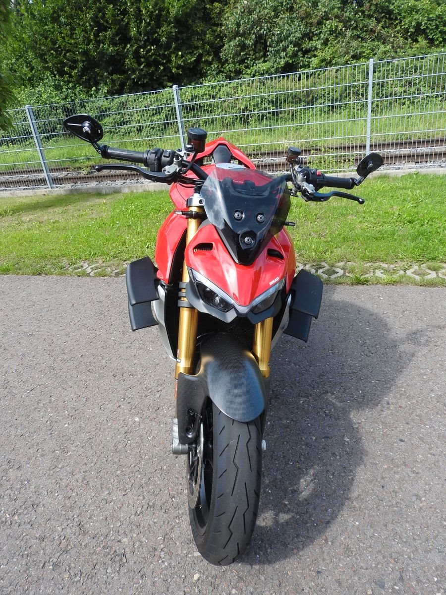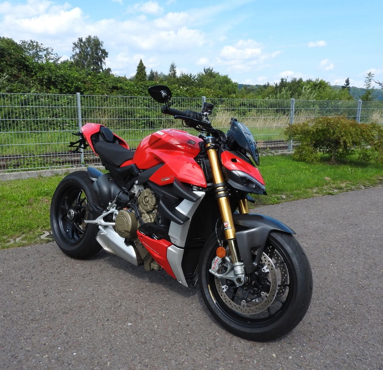 Die Maschine hat viel von ihren sportlichen Wurzeln aus der Panigale mitgenommen. Das wird Freunde vom Streetfighter begeistern. Elektronik und Motorleistung sind überlegen, das Chassis ist radikal schnell und die Maschine regiert bei den Stoppuhr Duellen. Sie hat jedoch Ecken und Kanten. Die große Überraschung: man sitzt gut auf der edlen Bestie und kann tatsächlich auch ausgedehnte Touren mit ihr fahren!