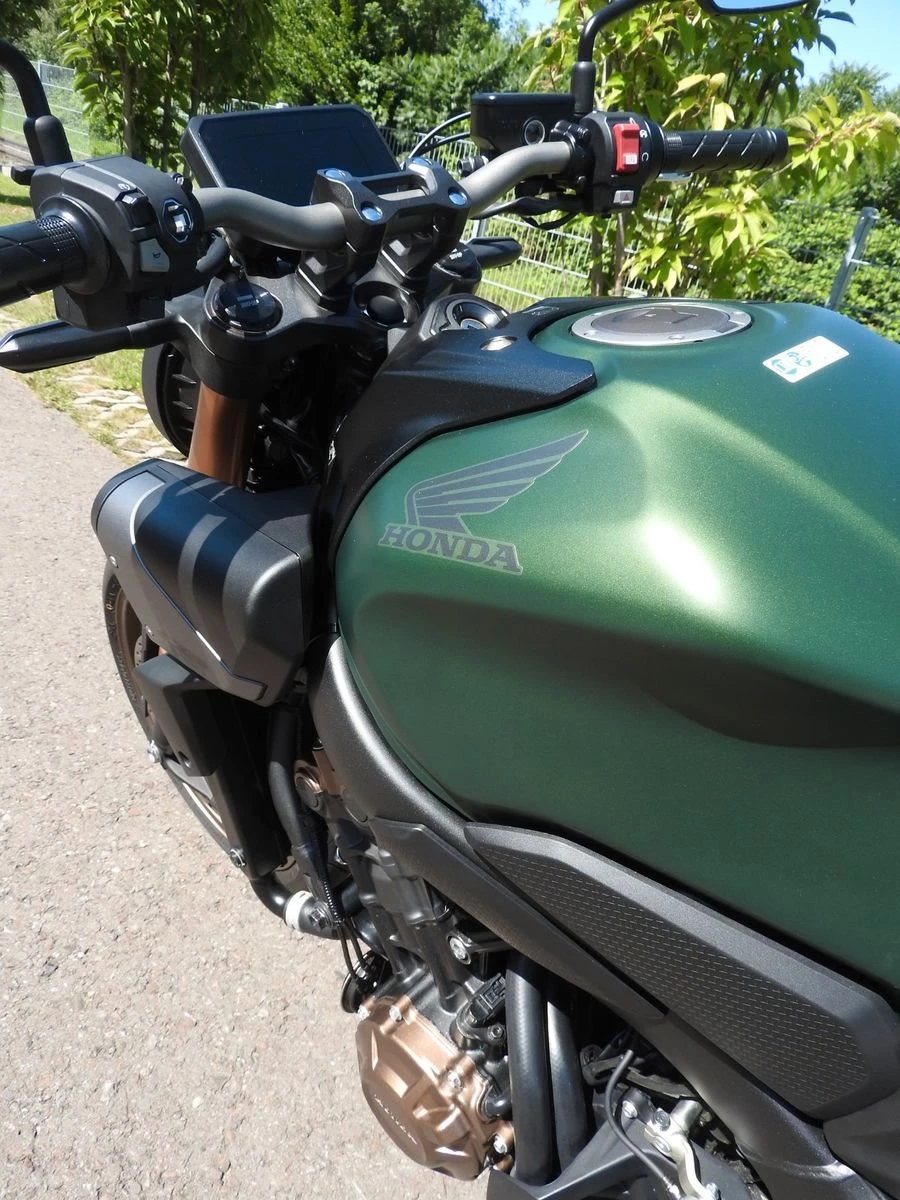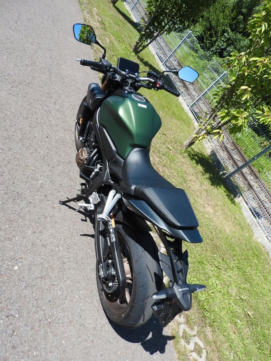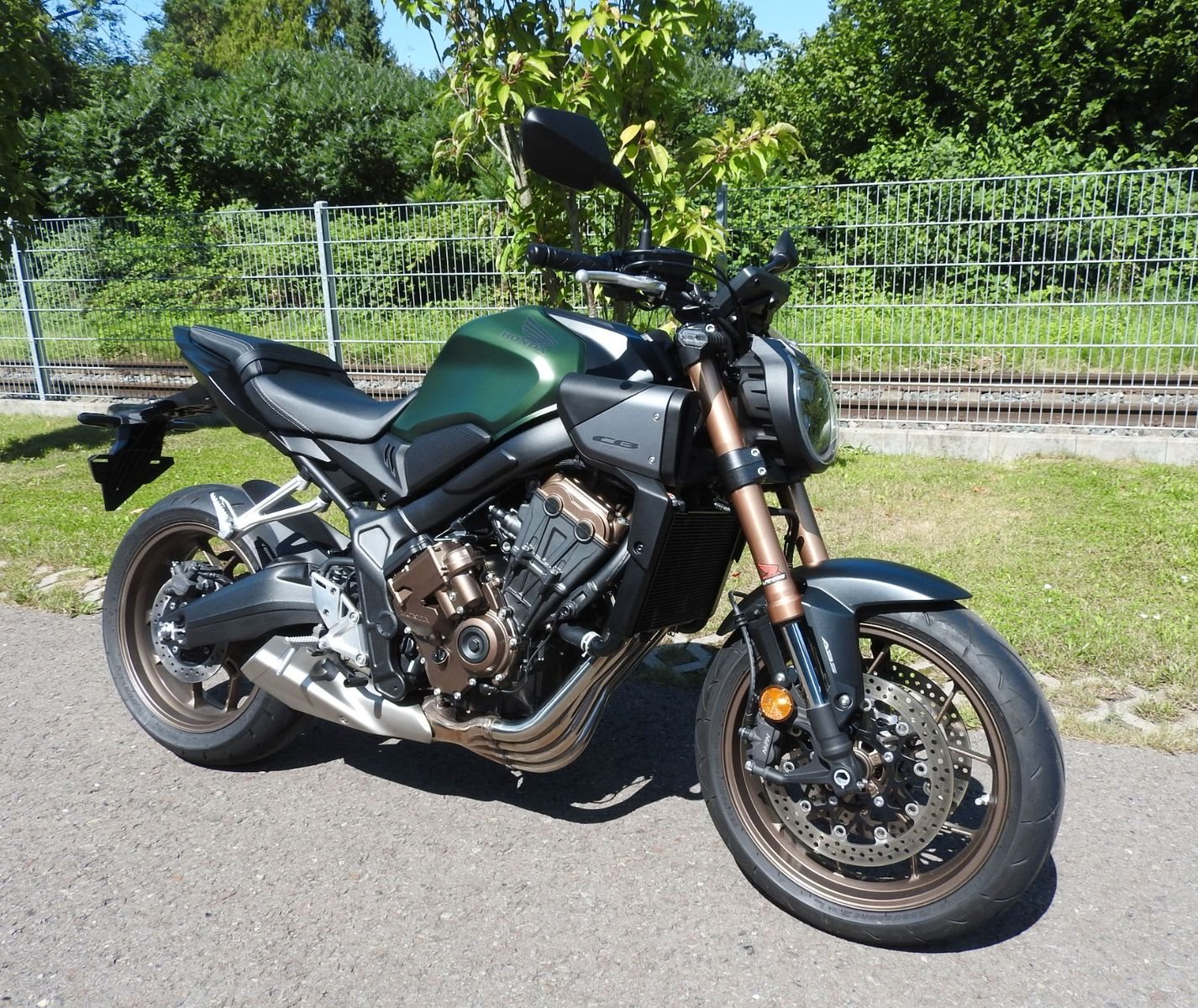 Zum Verkauf steht eine Honda CB650R (grün) aus unserem 'Demo-Park' mit einer Gesamtfahrleistung von nur 1133 Km.