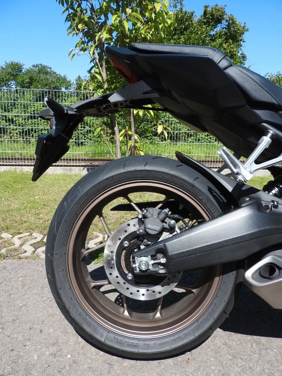 Leistungsstark unterwegsDu hast es in der Hand. Der DOHC-Vierzylinder-Reihenmotor leistet in der Spitze 70 kW (95,2 PS) - der rote Bereich beginnt bei 12.000 U/min - und bietet ein Drehmoment von 63 Nm. Honda Händler können das Bike für alle mit A2-Führerschein auf 35 kW drosseln und die Drosselung entfernen, sobald ein A-Führerschein vorgelegt werden kann. Da Leistung Kontrolle braucht, verhindert die Anti-Hopping-Kupplung das Blockieren des Hinterrads bei starkem Bremsen und Herunterschalten. Das Notbremssignal (ESS) wird bei Vollbremsungen aktiviert und sorgt so für bessere Sichtbarkeit auf der Straße.